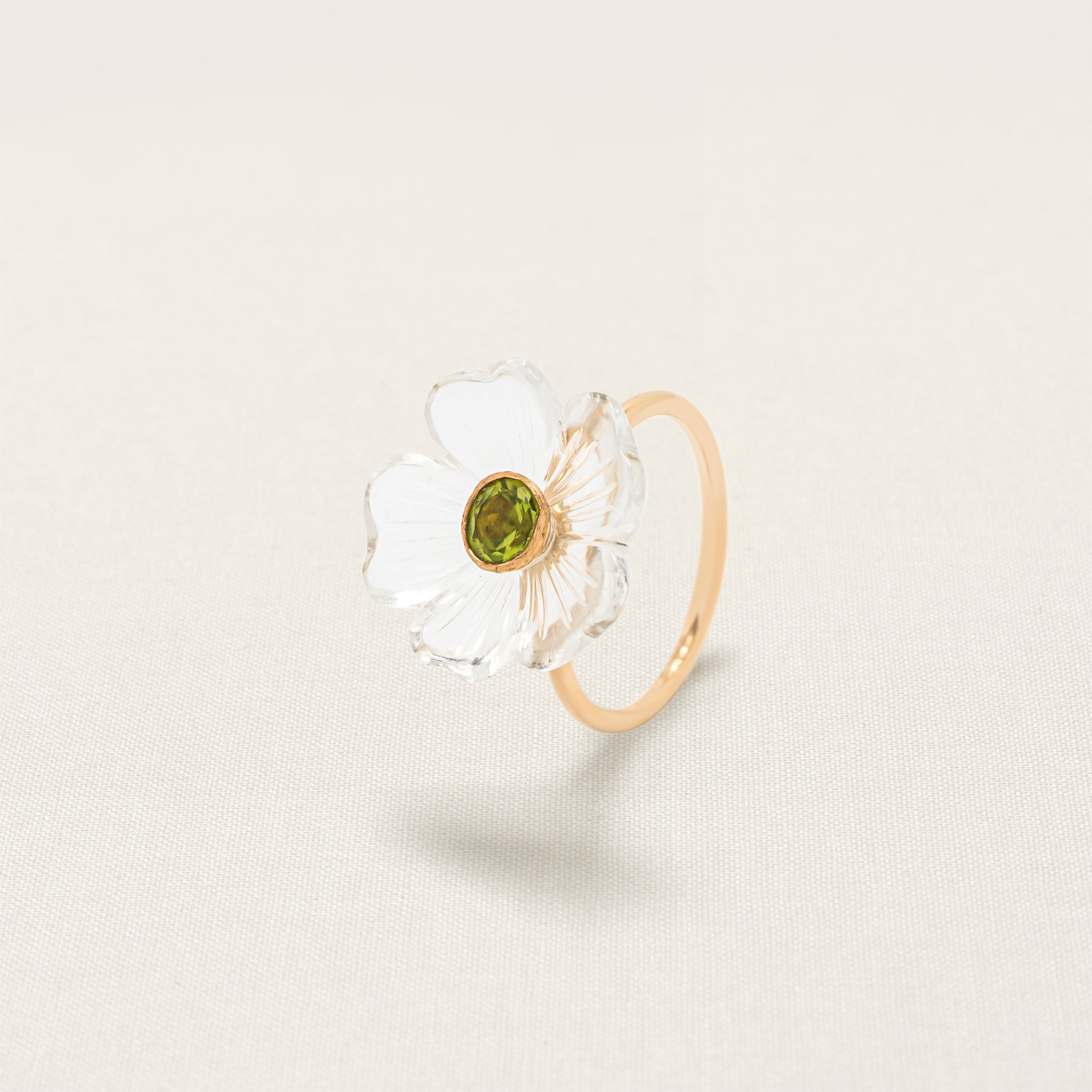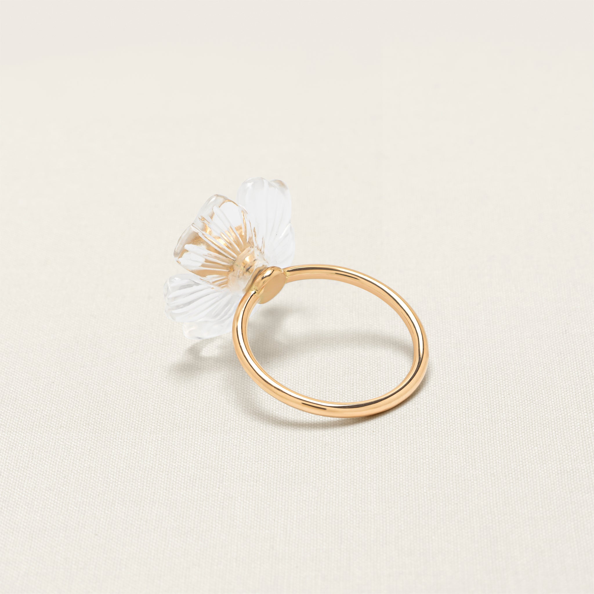 The flower on this iconic Sophie Joanne ring is hand-carved from crystal by an expert artisan, using an age-old, wood-carving technique. Crystal is known as one of the most powerful and healing stones. It energizes the physical, emotional, and energetic body.