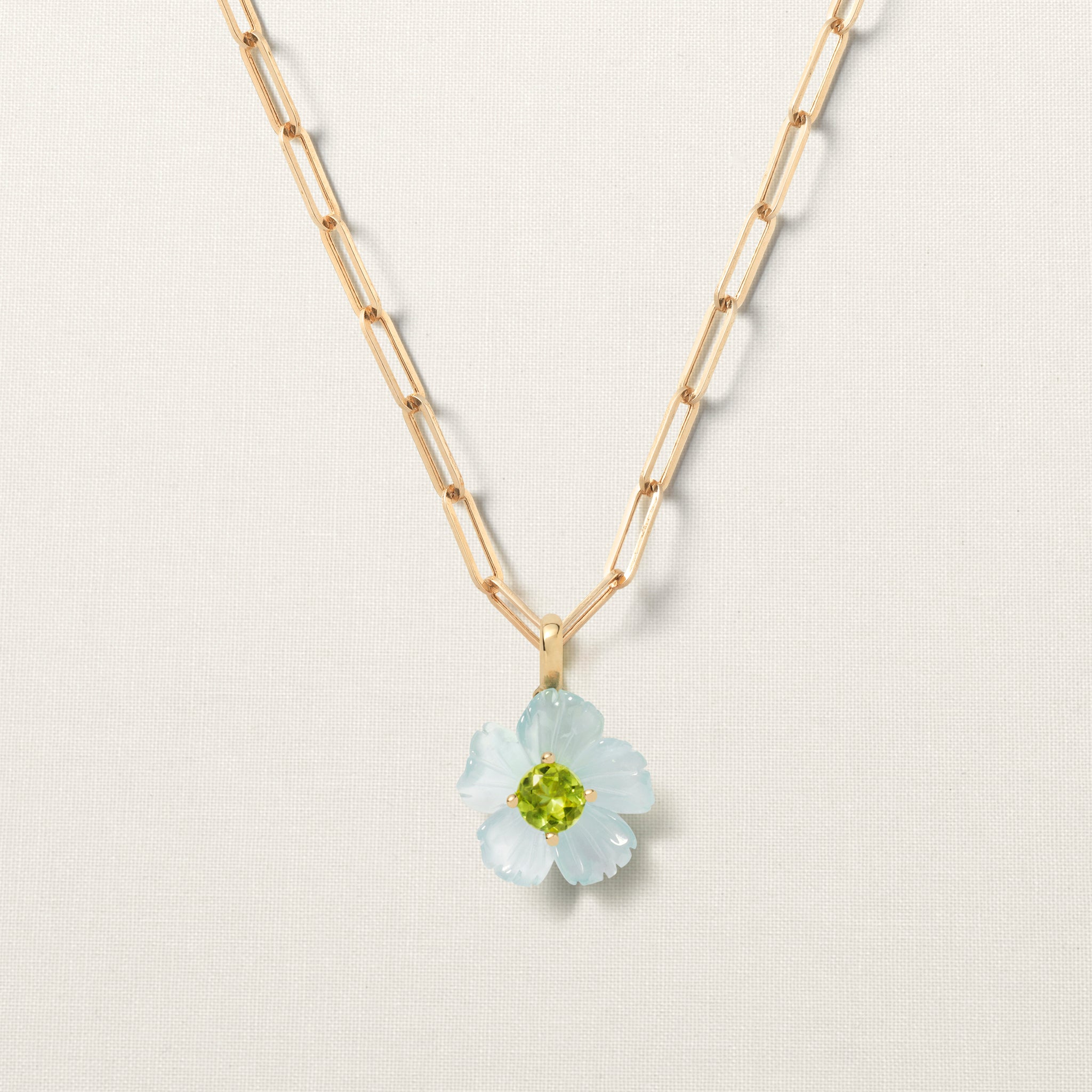 Made of 14k recycled gold, aquamarine, and a brilliant-cut peridot.