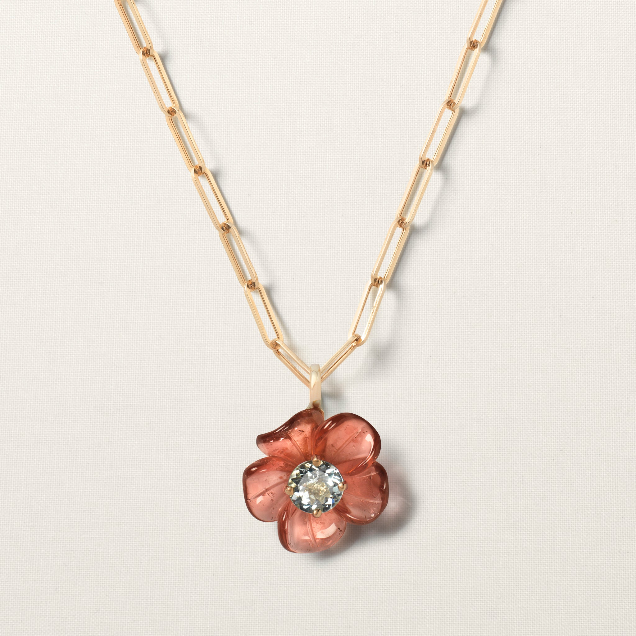 We present to you an entirely new floral design: The Island Flower. Drawing inspiration from Andy Warhol's iconic 1964 flower series, the Island Flower is hand-carved in Germany from high-quality tourmaline, which symbolizes joy, emotional healing, and love.