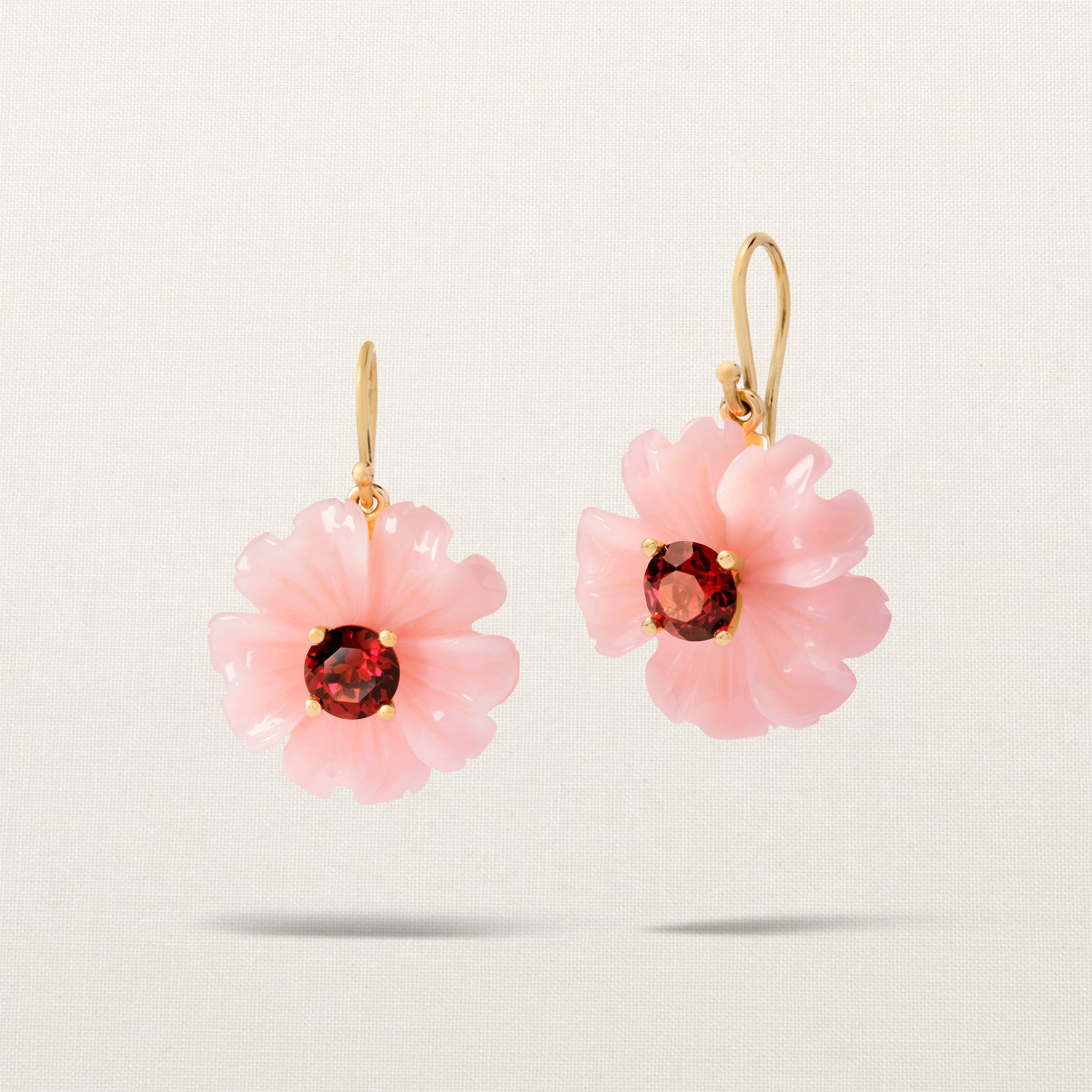 These earrings are handmade from 14-karat recycled gold in our Atelier in Amsterdam. All gemstones are natural and hand carved, therefore there may be a slight variation in color, shape, and weight of the product.