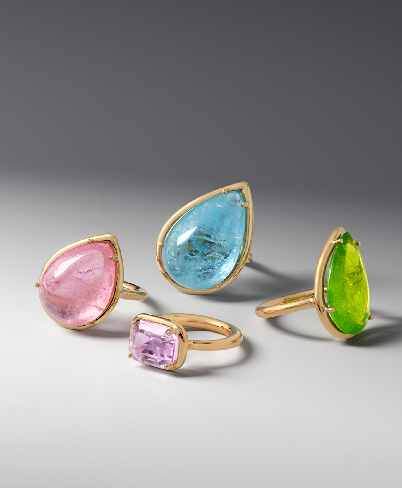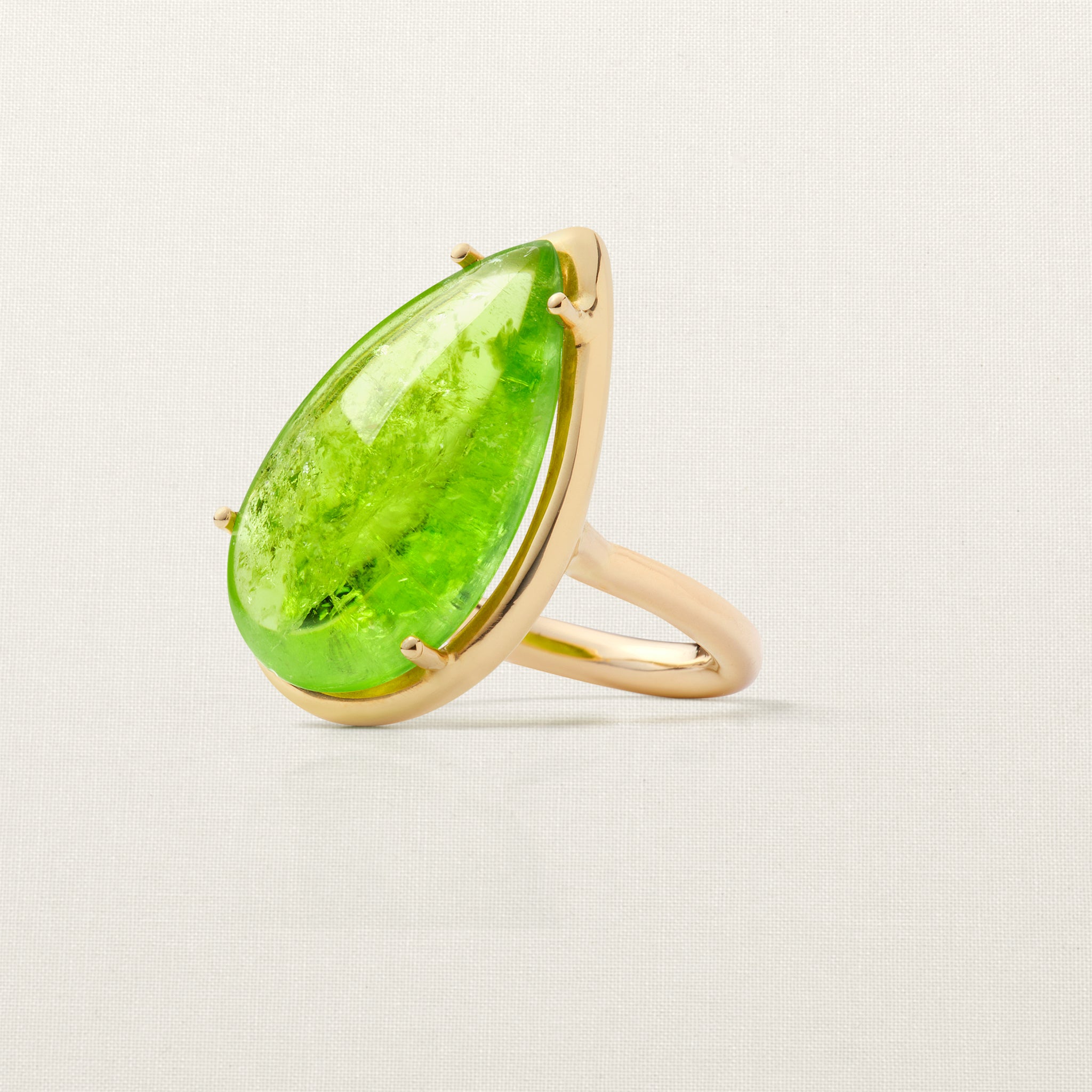 The Liquid ring is hand-carved in Germany from high-quality green tourmaline, which symbolizes joy, emotional healing, and love.