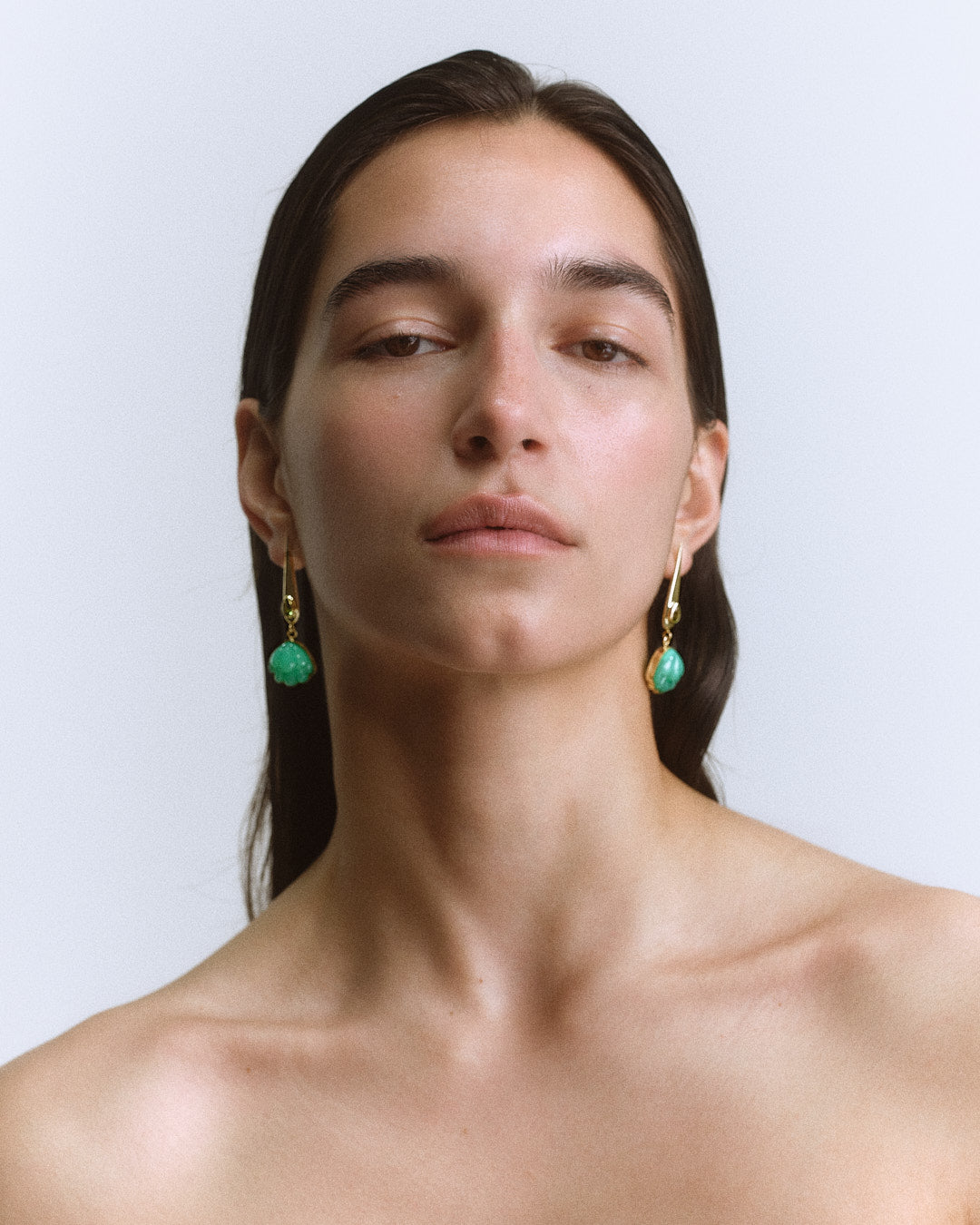 This piece is handmade from 14-karat recycled gold in our Atelier in Amsterdam. All gemstones are natural and hand carved, therefore there may be a slight variation in color, shape, and weight of the product.