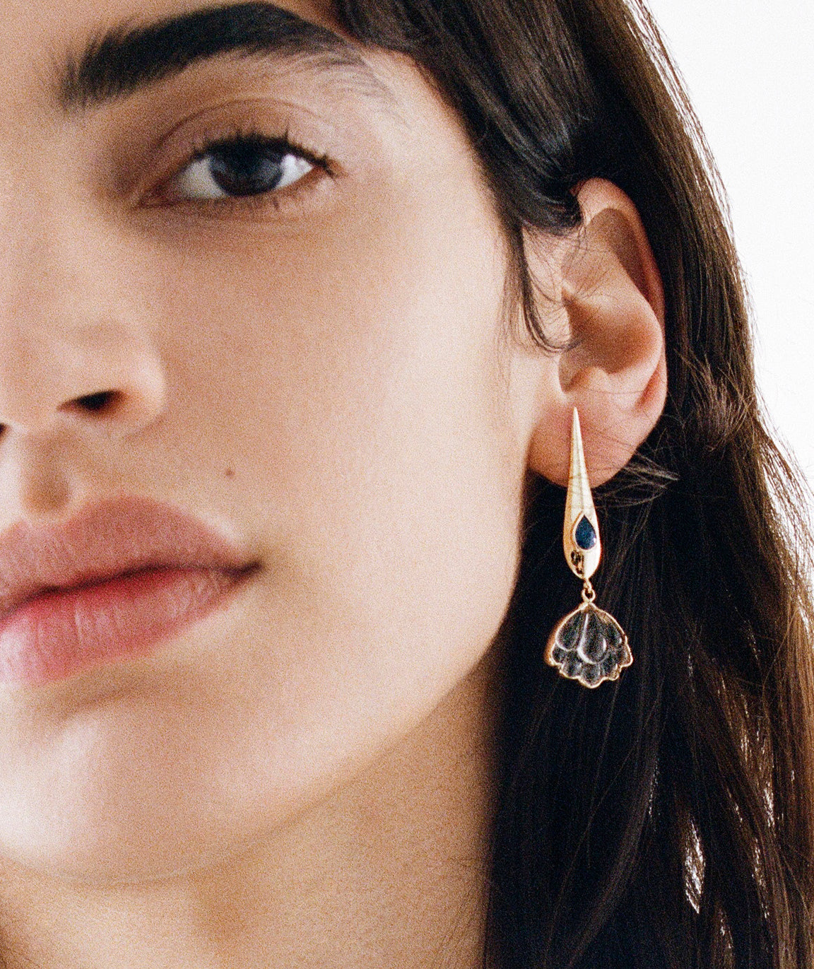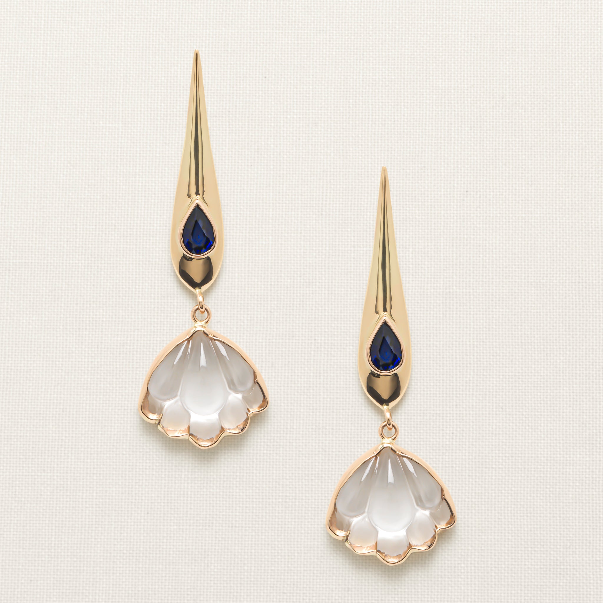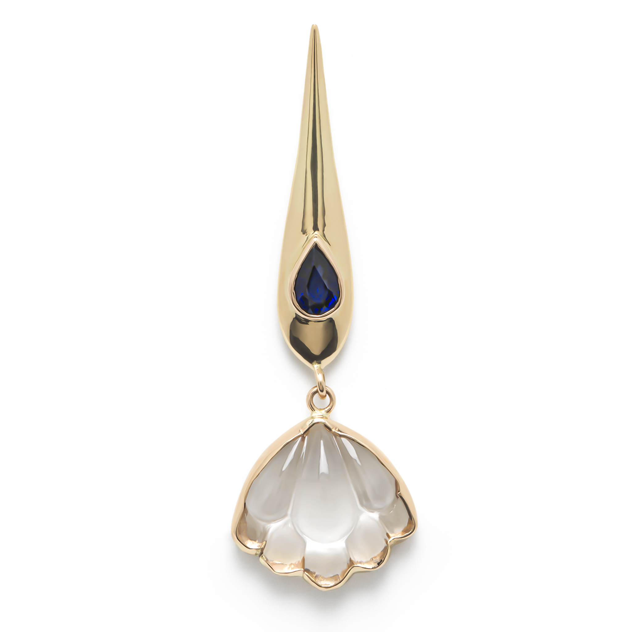 The solid golden drop is adorned by a pear-shaped sapphire, the stone of focus and discipline.