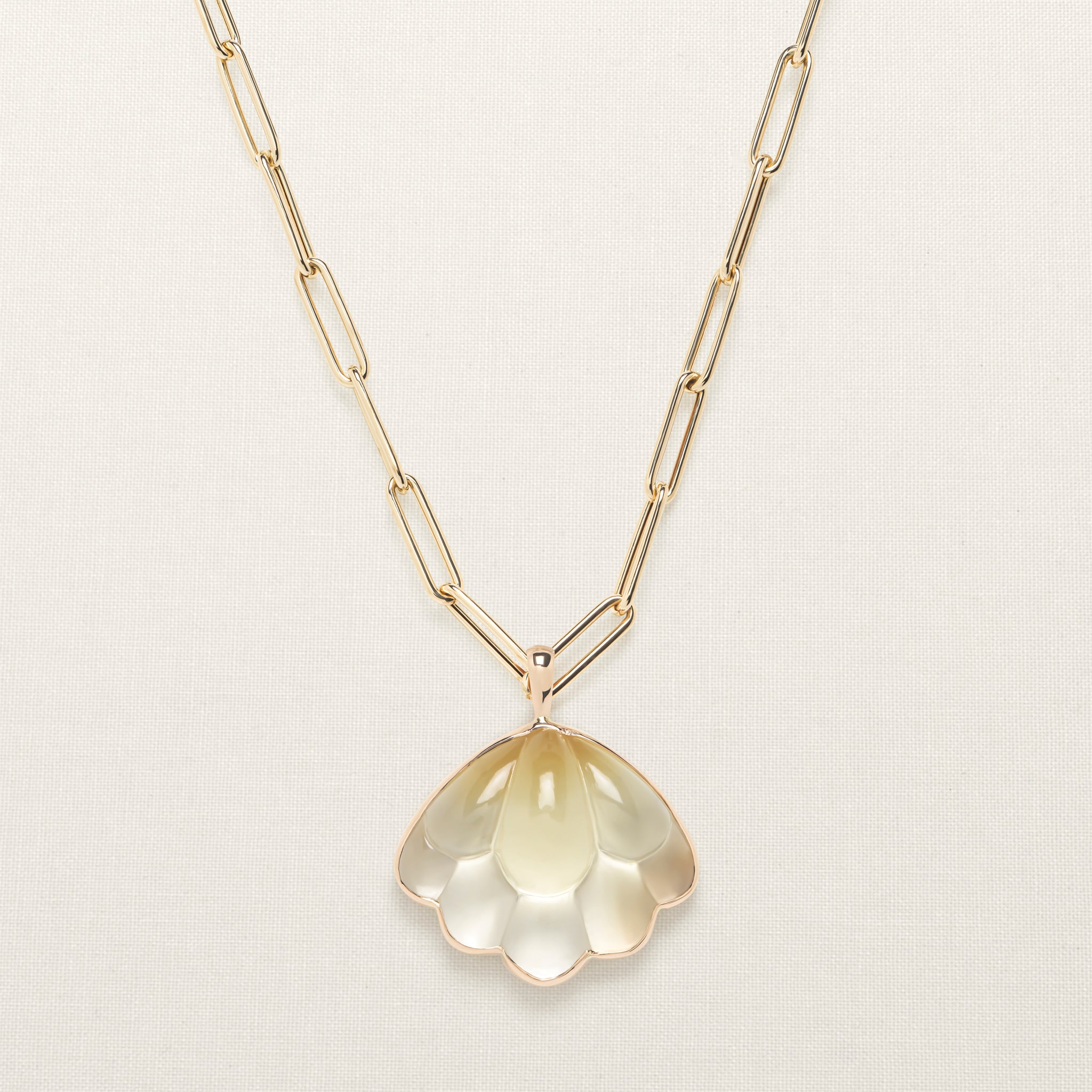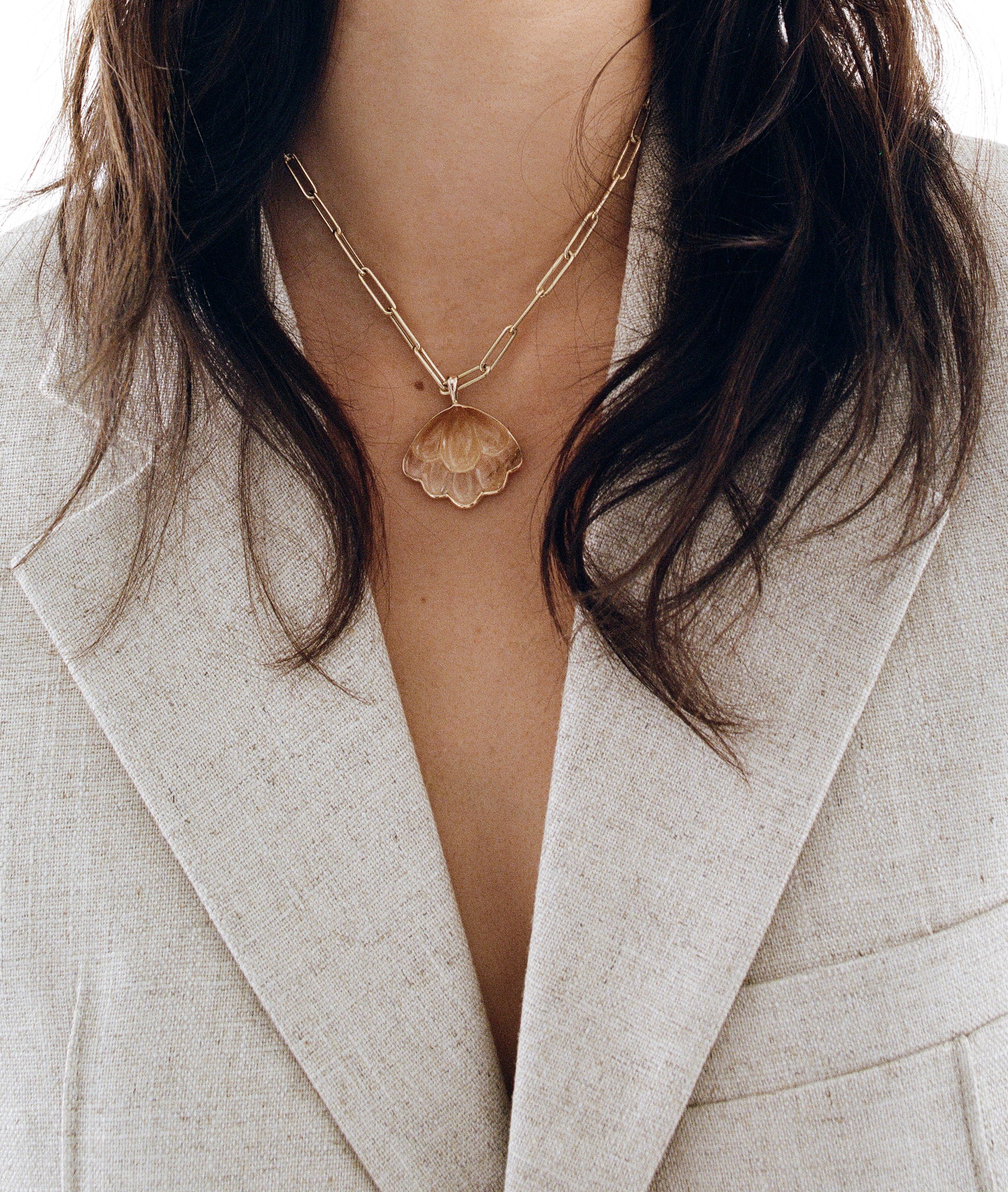 This pendant feels almost sculptural and lends its fluid shape to the works of Jean Arp (1886) and Constantin Brancusi (1876). The flower is associated with rebirth and spiritual enlightenment.