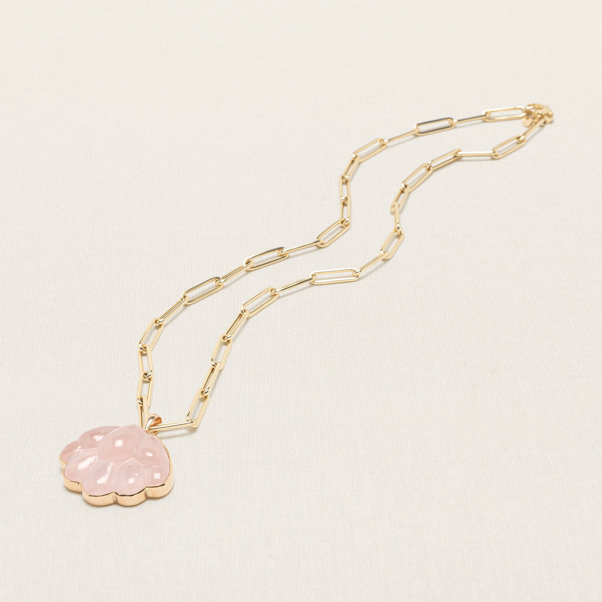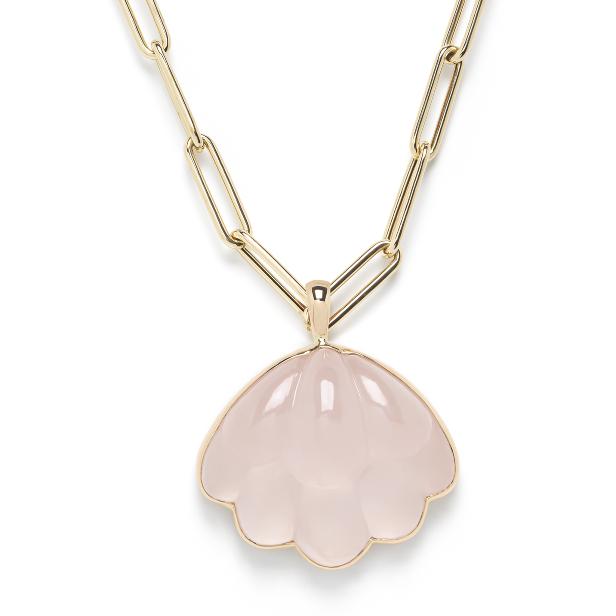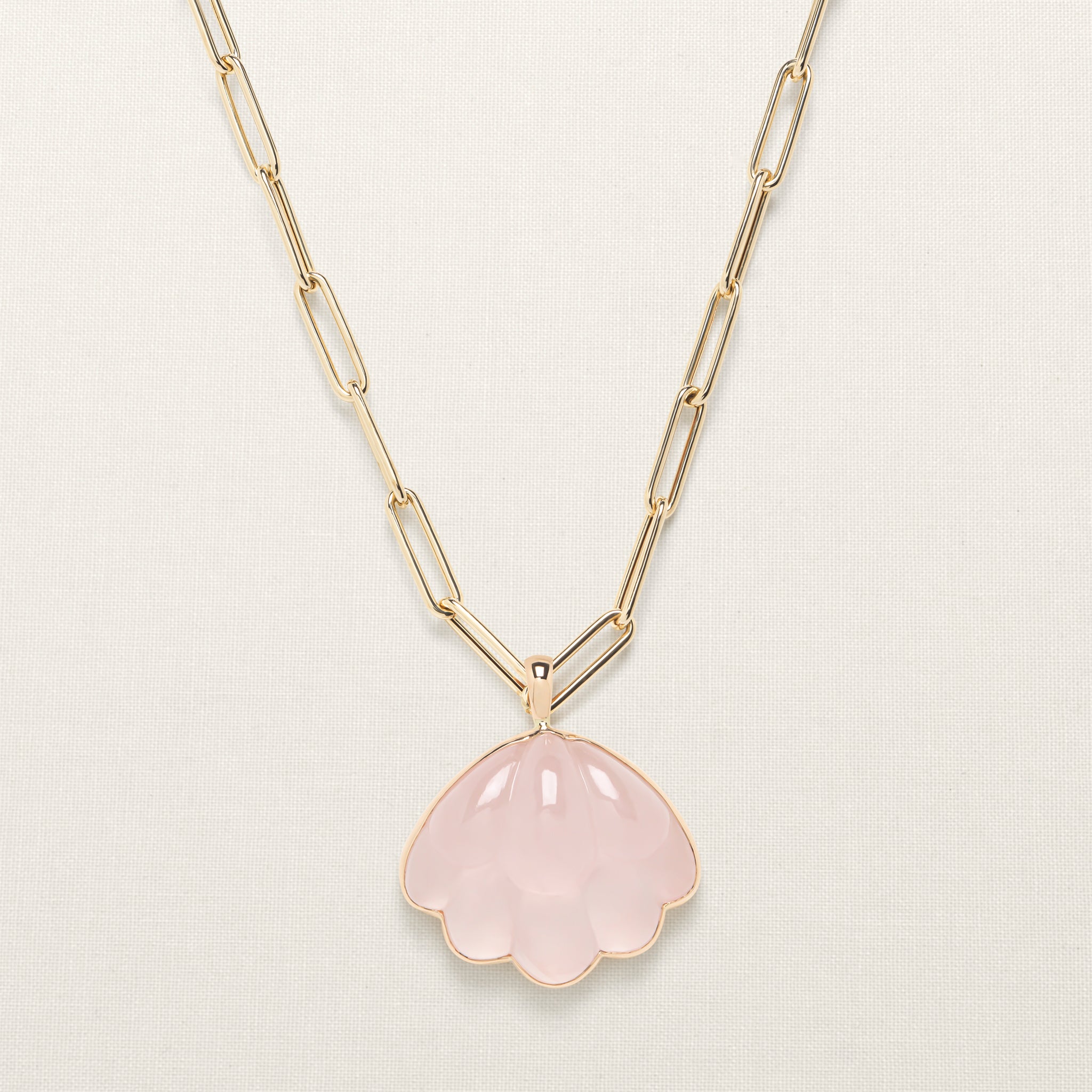 This pendant is hand-carved from rose quartz into the shape of a lotus by an expert artisan, using an age-old, stone-carving technique. Rose Quartz opens up your heart chakra to every kind of love that you need — whether it’s self-love, familial love, friendship love, love for humanity, or romantic love.