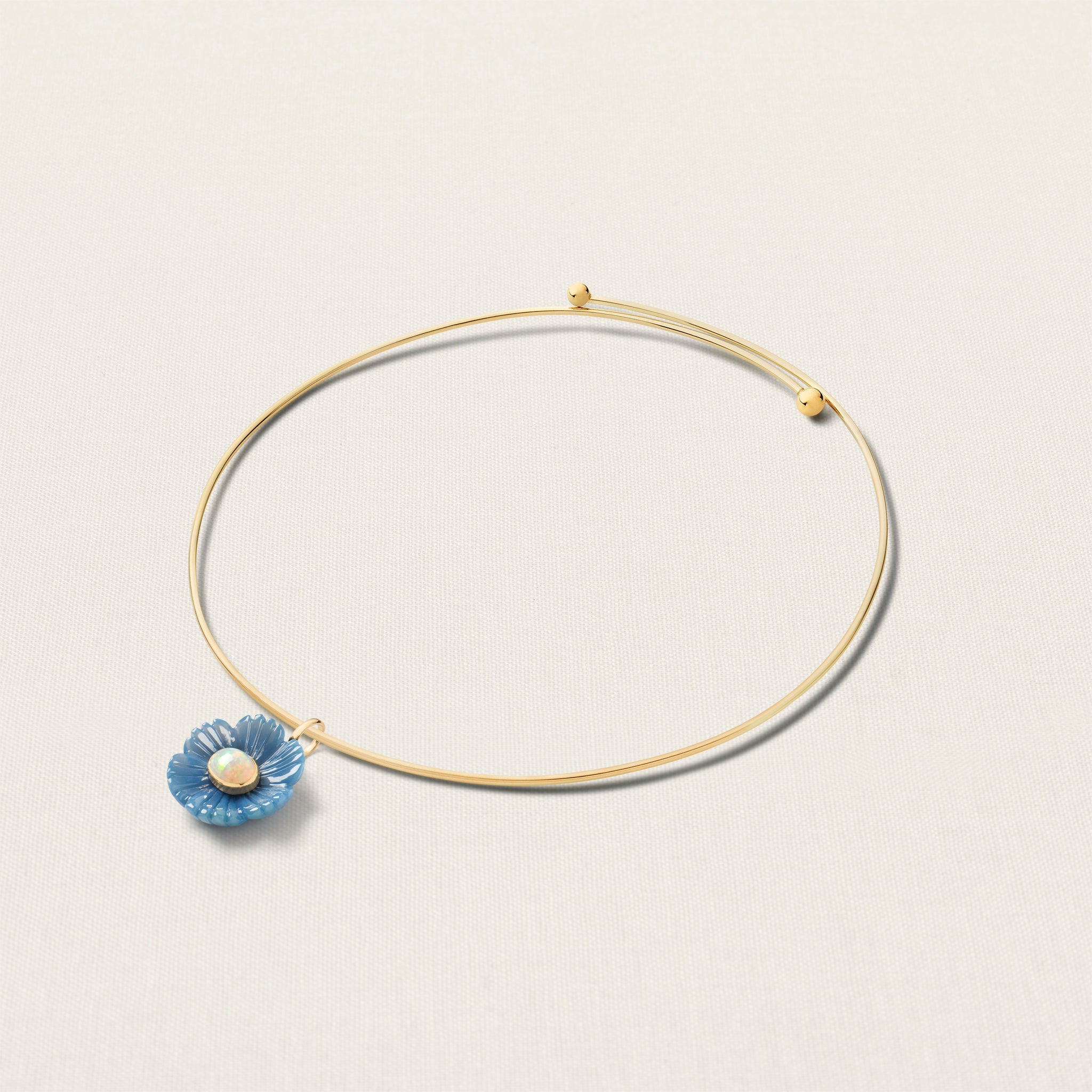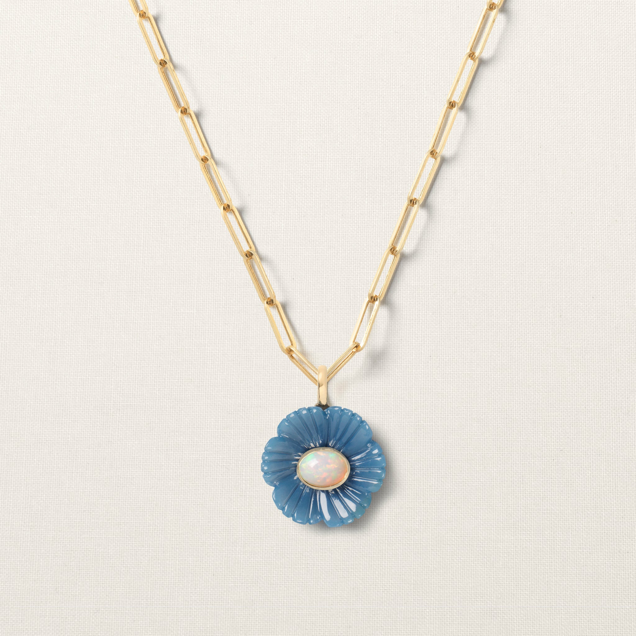 The flower on this iconic Sophie Joanne ring is hand-carved from blue opal by an expert artisan, using an age-old, wood-carving technique. Blue Opal is good for creativity, communication, and the courage to speak your mind.